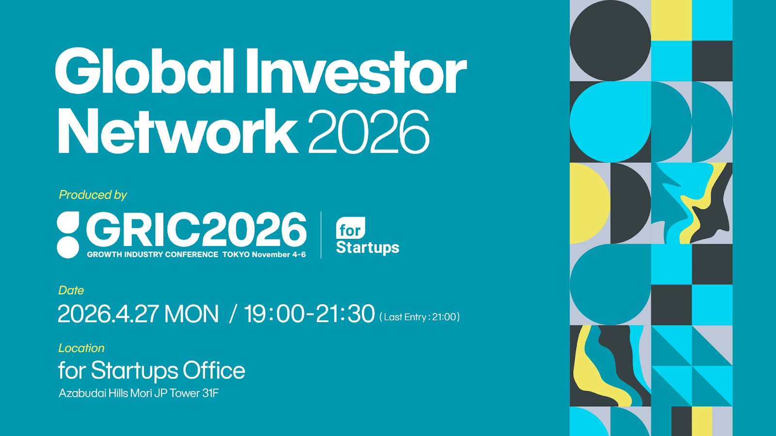パートナーイベントとして、「SusHi Tech Tokyo 2026」の開催に合わせ、日本のスタートアップエコシステムと世界を繋ぐ、GRIC2026公式ネットワークイベントを開催いたします。
